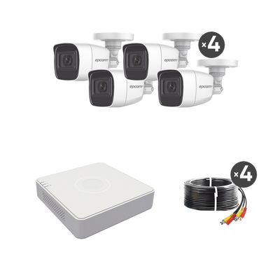 Kit de 4 cámaras de seguridad EPCOM con micrófono integrado TurboHD 1080p Lite / DVR 4 canales / Audio por Coaxitron / 4 Cámaras Bala de Metal. (No incluye disco duro).