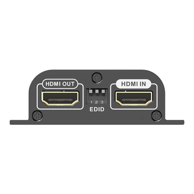30Hz, mediante cable UTP Cat6, cuenta con un interruptor EDID para adaptar la imagen transmitida a las capacidades del monitor o pantalla, también con 1 blaster TX y 1 blaster RX lo que nos permite la transmisión de señales si su equipo fuente cuenta con control remoto, su salida Loop HDMI en el transmisor permite colocar una pantalla de manera local para la función de monitoreo, gracias a la tecnología PoC solo requiere alimentación el equipo transmisor.