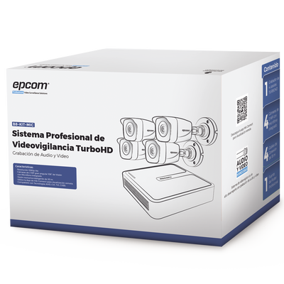 Kit TurboHD EPCOM PROFESSIONAL 1080p Lite / DVR 4 canales / Audio por Coaxitron / 4 Cámaras Bala de Metal con Micrófono Integrado (No incluye disco duro)